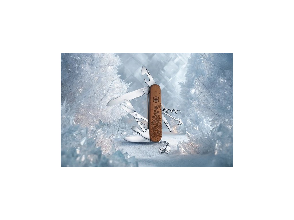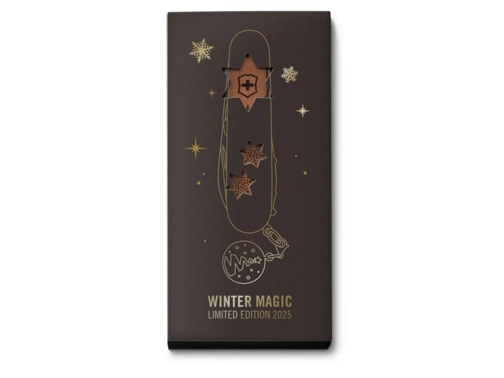 Climber Winter Magic 2025 je nejnovějším modelem z úspěšné řady limitovaných edic. Už pět let projekt Winter Magic představuje originální design, charakteristické švýcarské řemeslné zpracování Victorinox a jedinečné umělecké pojetí, díky nimž se stal vyhledávaným po celém světě. Edice pro rok 2025 tuto tradici hrdě rozvíjí. Inspirovaná kouzlem a půvabem zasněžené zimní krajiny přináší detailní motiv stromu a hvězd, vyrytý laserem do střenek z hruškového dřeva. Vychází z modelu Climber – originálního Swiss Army KnifeTM, s nímž se začala psát